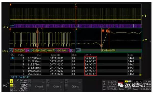圖3 雙(shuang)ZOOM下的CAN協議(yi)解碼