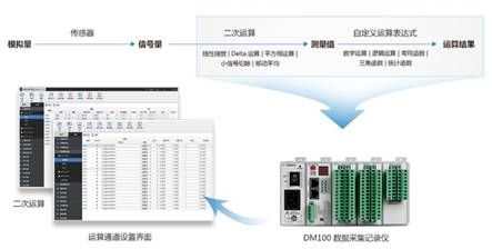 DM100數據采(cǎi)集模塊在采(cai)集信号量後(hou),用戶可通過(guo)線性縮放、Delta運(yùn)算、平方根運(yùn)算等二次運(yùn)算得到所需(xu)的測量值,同(tong)時還能對測(ce)量值進行自(zi)定義表達式(shi)運算,将測量(liang)值或運算值(zhí)作爲變量在(zài)表達式中執(zhi)行,保存運算(suan)結果。并可将(jiang)測量數據及(jí)時保存在内(nèi)存中,支持8G以(yǐ)上存儲容量(liang),連續記錄測(ce)量數據可達(da)60天以上,并可(kě)根據指定通(tong)道生成報表(biao),導出文本或(huo)二進制格式(shi),方便數據的(de)統計與分析(xī)。