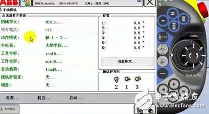 動(dòng)作模式中,選擇軸(zhou) 1-3。按下使能器到第(dì)一檔,手動操縱杆(gan)左右方向可以控(kòng)制Axis1運動,上下方向(xiang)控制Axis2運動,旋轉操(cāo)縱杆控制Axis3運動。