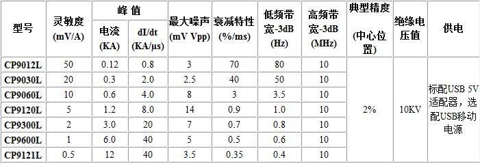CP9000(S/L)系列柔性(xìng)電流探頭具有高(gao)帶寬,高精度(典型(xing)值2%)特點。可以⭐實現(xian)寬廣的電流測量(liang)範圍,頻率可從幾(ji)Hz到數十MHz,電流範圍(wéi)從mA級别到數KA級别(bie),大大解決了電流(liu)測試的難題。其主(zhu)要特點包括:線圈(quan)輕巧柔軟且可以(yǐ)自由插拔,可以探(tàn)測到許多硬制探(tan)頭無法達到的地(di)方,輕而易舉的實(shí)現⭐與被測對象連(lian)接;插入損🏃🏻耗幾乎(hū)爲零,僅爲幾個皮(pí)亨,對被測對象近(jìn)乎爲零💜的幹擾;标(biao)準的BNC輸出接口,很(hěn)方便實現與示波(bō)器,數據👈采集器,數(shù)字電壓表等連接(jie),觀測電流波形;USB供(gòng)電接口設計🌏,使用(yòng)更加靈活方便;聲(sheng)光過流報警功能(neng)🔅,更具人性化設計(jì);探頭環🏃♂️和連接線(xian)長度可以根據客(ke)戶要求定制,滿足(zu)特殊場合測試要(yào)求。