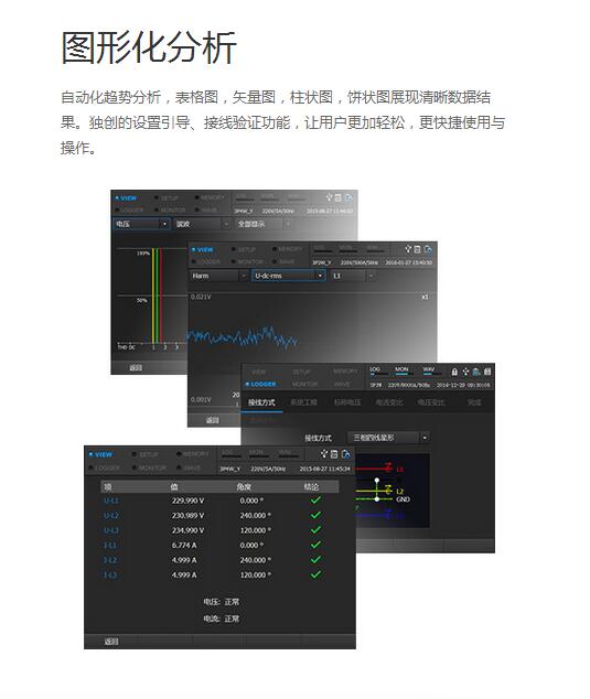 E6500電能質(zhi)量和能效(xiao)分析儀,支(zhī)持50Hz/60Hz電網工(gōng)頻系統測(cè)量,它可記(ji)錄分析現(xian)場的諧波(bo)、電壓、電流(liu)、頻率、波動(dòng)、閃變、功率(lü)和三相不(bú)平衡等所(suǒ)有電能質(zhì)量參數,具(jù)備高級電(diàn)能質量測(ce)量功能,同(tóng)時提供了(le)專業的上(shang)位機分析(xi)軟件進行(háng)二次分析(xī),爲用戶提(ti)供最準确(que)的電力故(gù)障診斷分(fen)析。