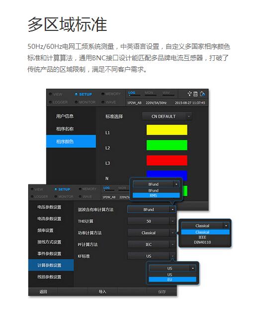 IEC61000-4-30 A級标準(zhǔn)諧波測量(liàng)/EC61000-4-15閃變測量(liàng)/行業領先(xiān)測量精度(du)0.1