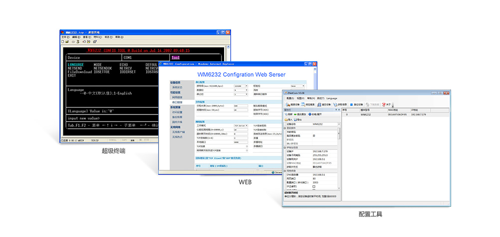 模塊支(zhī)持專用軟件、網頁(yè)、AT命令及無線遠程(cheng)配置,滿足用戶各(ge)種不同使用方式(shi)的需求。