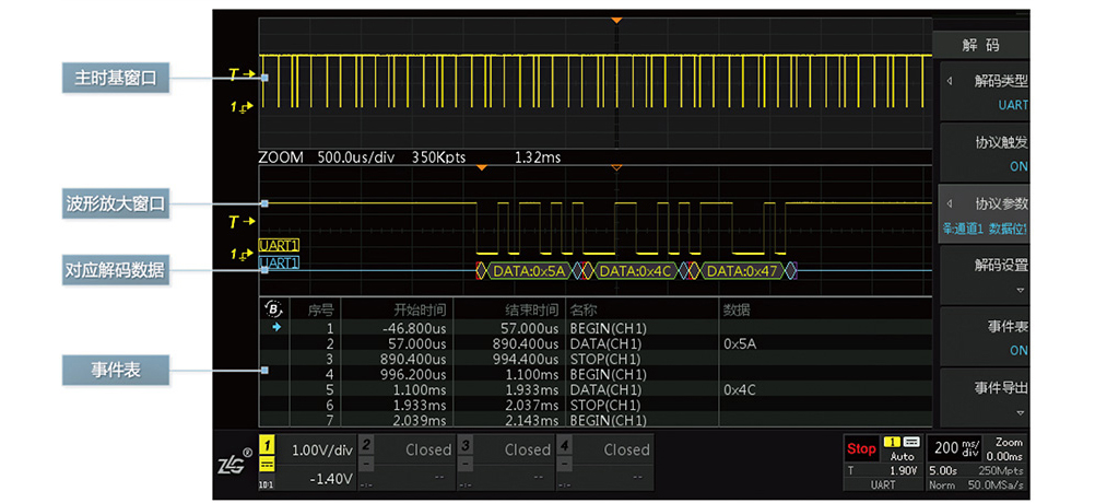 ZDS2024 Plus示波器(qì)史無前(qian)例地免(mian)費配備(bèi)了25種(zhong)協議解(jie)碼,CAN、LIN、I2C、SPI、UART、USB、PS/2、DALI、Wiegand、1-Wire、DS18B20、HDQ、 SD_SPI、SD_SD、IrDA、Manchester、DiffManche、Miller、DHT11、 SHT11 NEC、RC5、RC6、FlexRay,除此(cǐ)之外,ZDS2024 Plus還全球(qiú)獨家免(mian)費配備(bei)了CAN FD協(xie)議解碼(mǎ),真正再(zai)一次定(dìng)義了200M示波器(qi)!