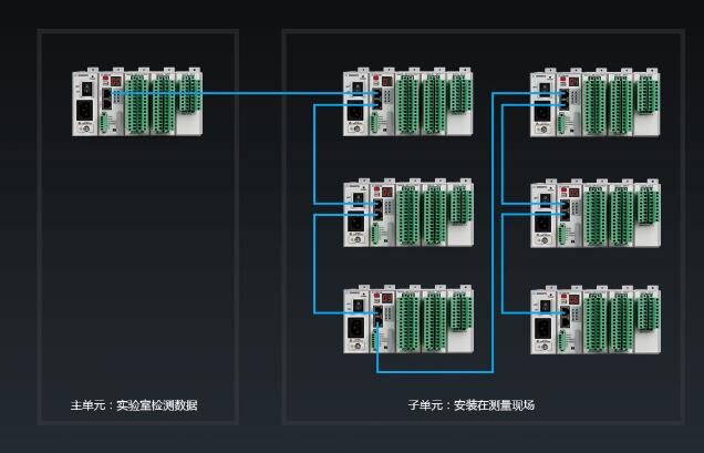 DM100主機采用(yong)雙網口設(she)計,用戶可(ke)通過以太(tai)網線進行(hang)多台級聯(lian)、遠程操作(zuò),靈活增減(jiǎn)數據采集(ji)模塊的類(lei)㊙️型與數量(liàng),最多可擴(kuò)展至200個采(cai)集通道。當(dang)測量場所(suǒ)比較分散(san)時,測量現(xiàn)場☁️采集模(mo)塊與數😍據(jù)記錄儀主(zhu)機可分開(kāi)安裝,避免(miǎn)遠距離連(lián)接信号線(xian)。