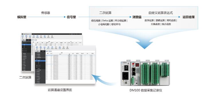數據(ju)采集模塊(kuài)在采集信(xin)号量後,用(yòng)戶可通過(guo)線性🔞縮放(fang)🛀、Delta運算📧、平方(fāng)根運算等(deng)二次運算(suàn)得到所需(xu)的測量值(zhí),同時還能(néng)對測🥵量值(zhi)進行自定(ding)義表達式(shì)運算,将測(cè)量值或運(yùn)算值作爲(wèi)變量在表(biǎo)達式中執(zhí)行,保⭐存運(yùn)算結果。