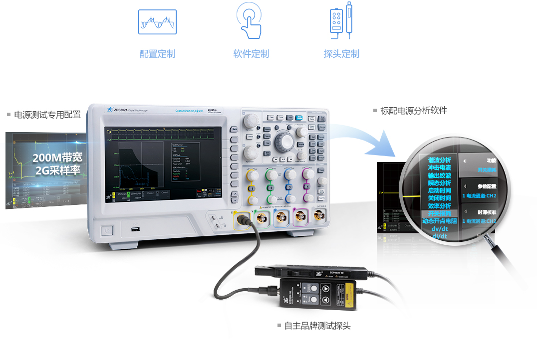 示波器(qì)作爲通用(yòng)測試儀器(qi),産品設計(ji)必須平衡(héng)不同行業(yè)的需求。電(dian)源測試以(yǐ)模拟信号(hào)爲主,很少(shǎo)測數字信(xìn)号。爲了解(jiě)決通用示(shi)波器測量(liang)電源資源(yuan)冗餘的問(wèn)題,我們爲(wèi)電源工程(cheng)師量身定(ding)制了電源(yuan)測試專用(yong)版示波器(qì),将電源行(háng)業最常用(yòng)的200M帶寬、2G采(cǎi)樣💃🏻搜❌色网㊙️率基于(yu)最優成本(běn)和行業✍️需(xū)求優化至(zhi)極緻。
