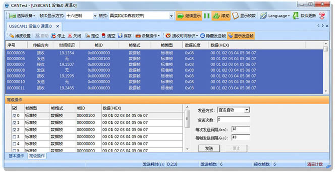 3.高級(jí)操作可(ke)預定義(yi)100幀,并且(qiě)可設置(zhì)發送次(ci)數與間(jian)隔
