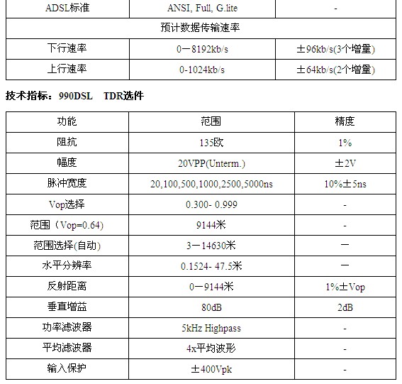 990DSL是(shi)按照可升(sheng)級的結構(gou)進行設計(jì)和制造的(de),它可以讓(rang)您📐根㊙️據需(xu)要來設置(zhì)測試的能(néng)力,以滿足(zu)您的特殊(shu)需要。990DSL基🈲本(běn)配置是✌️爲(wèi)傳㊙️統電話(hua)線路(POTS)應用(yong)而設計的(de),包括電壓(ya)、開🛀路、短路(lù)、平衡、RFL、VF噪💰聲(shēng)和損耗、端(duan)接和撥⭕号(hao)測試、負載(zai)線圈的識(shi)别和定位(wei)、線路的監(jiān)測等。時🈲域(yù)反射(TDR)選件(jiàn)是當今手(shou)持式測試(shì)儀中故障(zhàng)定位精📱确(què)度最高的(de)測試手段(duàn)之一。它還(hái)包括了線(xian)對測試和(hé)比較的能(neng)力,測試結(jié)果存儲以(yǐ)及👉測試線(xian)對之間的(de)串擾。寬帶(dai)選件給了(le)您依據所(suo)有标準的(de)數字業💛務(wù)(包括HDSL、HDSL2、T1、E1、ISDN BRI、 ISDN PRI、 DDS)進行(háng)線路認證(zheng)和故障診(zhen)斷所需要(yao)的一切功(gong)能。此外,其(qí)獨特的ADSL自(zì)動測