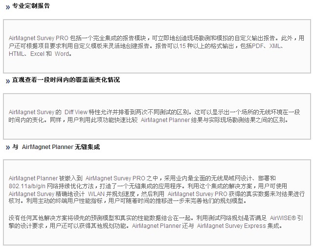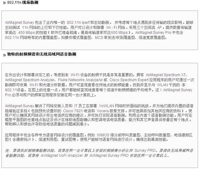 AirMagnet Survey 包(bao)括 “Express” 和 “Pro” 兩款(kuǎn)産品。AirMagnet Survey Express 提供(gòng)簡化的解(jiě)決方案版(ban)本,允許用(yong)戶執行㊙️基(ji)本的 Wi-Fi 站點(diǎn)勘測功能(neng),并顯示有(you)關信号🔞、信(xin)噪,甚至用(yòng)戶性能的(de)視圖。AirMagnet Survey Pro 提供(gong) Express 版本的所(suo)有功能,并(bìng)添加了業(yè)界領先的(de)強大功能(néng),其中包括(kuò)其中包🧡括(kuò) 802.11n 部署、多樓(lóu)層部署、室(shi)外勘測、網(wǎng)絡設計💞驗(yàn)證、語音就(jiù)緒驗證和(he)勘測、射頻(pín)頻譜分析(xī)等等。