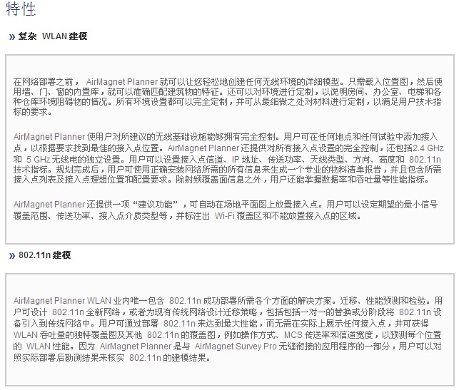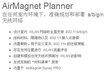 AirMagnet Planner 包含内(nèi)置自動化工(gong)具,幫助客戶(hù)從現有的傳(chuán)統 802.11a/b/g 網絡遷移(yí)到 802.11n 技術。