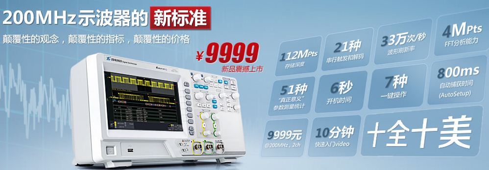 标配112Mpts存儲深度(dù),可觀察更長時(shí)間波形标配112Mpts存(cún)儲深度,業界之(zhi)最!讓您在觀察(cha)長時間信号的(de)同時又不丢失(shī)波形細節。 标配(pèi)21種協議觸發和(he)解碼功能标配(pei)21種協議觸發和(he)解碼, 包括I2C、SPI、UART、USB、SD、CAN、LIN、FlexRay、1-Wire、PS/2、HDQ、Wiegand、DALI 、DS18B20、SSI、IRDA、NEC、RC-5、RC-6、MANCHESTER、MILLER,史無(wú)前例!更智能的(de)示波器讓總線(xian)調試更方便! 超(chāo)過33萬次/秒的波(bō)形捕獲率,異常(cháng)事件一覽無餘(yu)示波器作爲日(rì)常調試工具,必(bì)須具備快速發(fā)現異常信号的(de)能力。波形捕獲(huò)率越高,死區時(shi)間越短,捕獲到(dào)異常信号的概(gài)率就越大。 颠覆(fù)性的速度,颠覆(fu)性的人性化設(she)計ZDS2022示波器擁有(yǒu)颠覆性的速度(du),開機時間短于(yu)6s,自動捕獲僅需(xu)800ms,操作響應速度(dù)快,即使在112Mpts深存(cun)儲模式下仍能(neng)實時刷新,同時(shí)還擁有7種一鍵(jiàn)操作:一鍵捕獲(huò)、一鍵光标、一鍵(jiàn)餘輝、一鍵清除(chú)、一鍵縮放、一鍵(jian)滾動和一鍵存(cún)儲,方便快捷;人(rén)性化的UI設計,專(zhuan)業的高級分析(xī)功能,獨一無二(èr)。 無與倫比的信(xin)号觸發和搜索(suo)功能完全标配(pei)的11種基本觸發(fa)和21種協議觸發(fā),讓ZDS2022示波器捕獲(huo)、隔離異常信号(hao)的能力出類拔(bá)萃,但是,驚喜遠(yuan)不止如此,創新(xīn)性的模闆觸發(fa)能輕而易舉的(de)隔離原本無法(fǎ)觸發的特殊異(yì)常信号,極大的(de)提高解決問題(tí)效率。同時該示(shì)波器具備強大(da)實時的硬件搜(sōu)索功能,能在數(shù)十萬個波形中(zhōng)迅速定位出感(gan)興趣的信号,顯(xiǎn)著提高異常信(xìn)号測量與分析(xī)的效率。 标配51種(zhong)自動測量參數(shu),真正意義的測(cè)量統計可自定(ding)義選擇51種測量(liàng)參數中的24種進(jìn)行同時測量,而(er)且能夠給出全(quan)存儲深度下所(suo)有波形的真正(zhèng)意義測量統計(jì)結果,計算出最(zuì)大值,最小值,平(ping)均值和标準差(cha)等。所有的測量(liàng)均基于硬件加(jiā)速,112Mpts樣本點的24種(zhong)參數同時測量(liàng)僅需1s。 标配4Mpts的FFT功(gōng)能,對信号頻譜(pǔ)洞察秋毫市面(miàn)上多數200MHz帶寬示(shì)波器最大隻支(zhi)持8kpts的FFT,在1GSa/s采樣率(lü)下頻率分辨率(lǜ)隻有125kHz,毫無實用(yong)價值。ZDS2022示波器打(dǎ)破常規,獨家支(zhī)持4Mpts的FFT分析功能(neng),在1GSa/s采樣率下頻(pin)率分辨率仍能(neng)精細到250Hz,能準确(què)分析出電路中(zhong)的幹擾噪聲來(lái)源,極大的提高(gāo)了FFT實用價值,且(qiě)運算速度快,支(zhī)持多種窗函數(shu),真正成爲信号(hào)分析利器。 标配(pei)256 級波形灰度等(děng)級顯示和色溫(wen)顯示功能在色(sè)溫顯示模式下(xià),屏幕上波形軌(gui)迹的色彩冷暖(nuǎn)就代表了該波(bō)形出現的概率(lü),高概率波形色(se)彩暖,低概率波(bō)形色彩冷,可更(geng)直觀地觀察信(xin)号抖動和毛刺(cì)。 強大的分段存(cun)儲功能,支持多(duō)達26萬個分段,海(hǎi)量記錄和分析(xi)感興趣事件ZDS2022示(shi)波器支持最多(duō)26萬個存儲分段(duan),可記錄連續發(fā)生的26萬個感興(xìng)趣事件,且所有(you)分段均支持測(ce)量與分析。 獨有(yǒu)的ScopeReportTM功能,極速完(wán)成測量、運算和(he)分析結果的歸(gui)檔在色溫顯示(shì)模式下,屏幕上(shang)波形軌迹的色(sè)彩冷暖就代表(biao)了該波形出現(xian)的概率,高概率(lü)波形色彩暖,低(dī)概率波形色彩(cai)冷,可更直觀地(di)觀察信号抖動(dong)和毛刺。