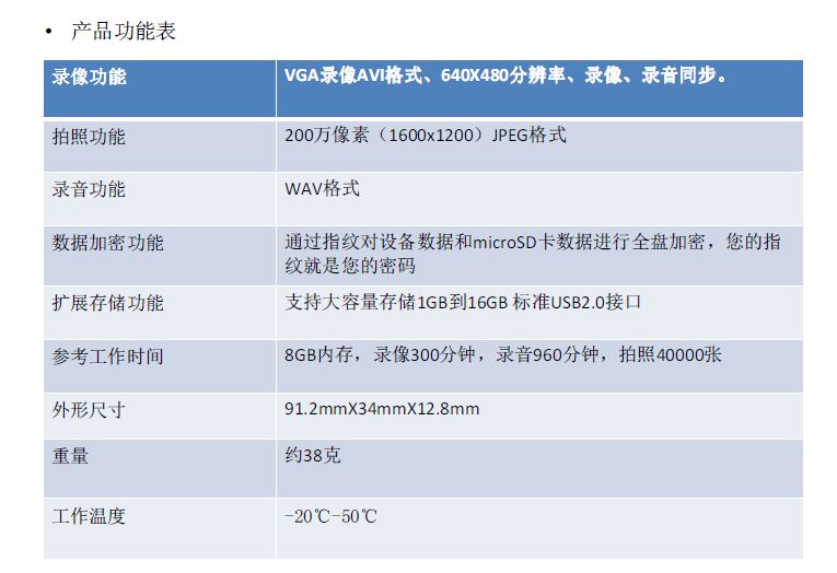 您的位置: 産品與(yǔ)服務 >> 飛指指紋加(jia)密微錄儀FPDV-301